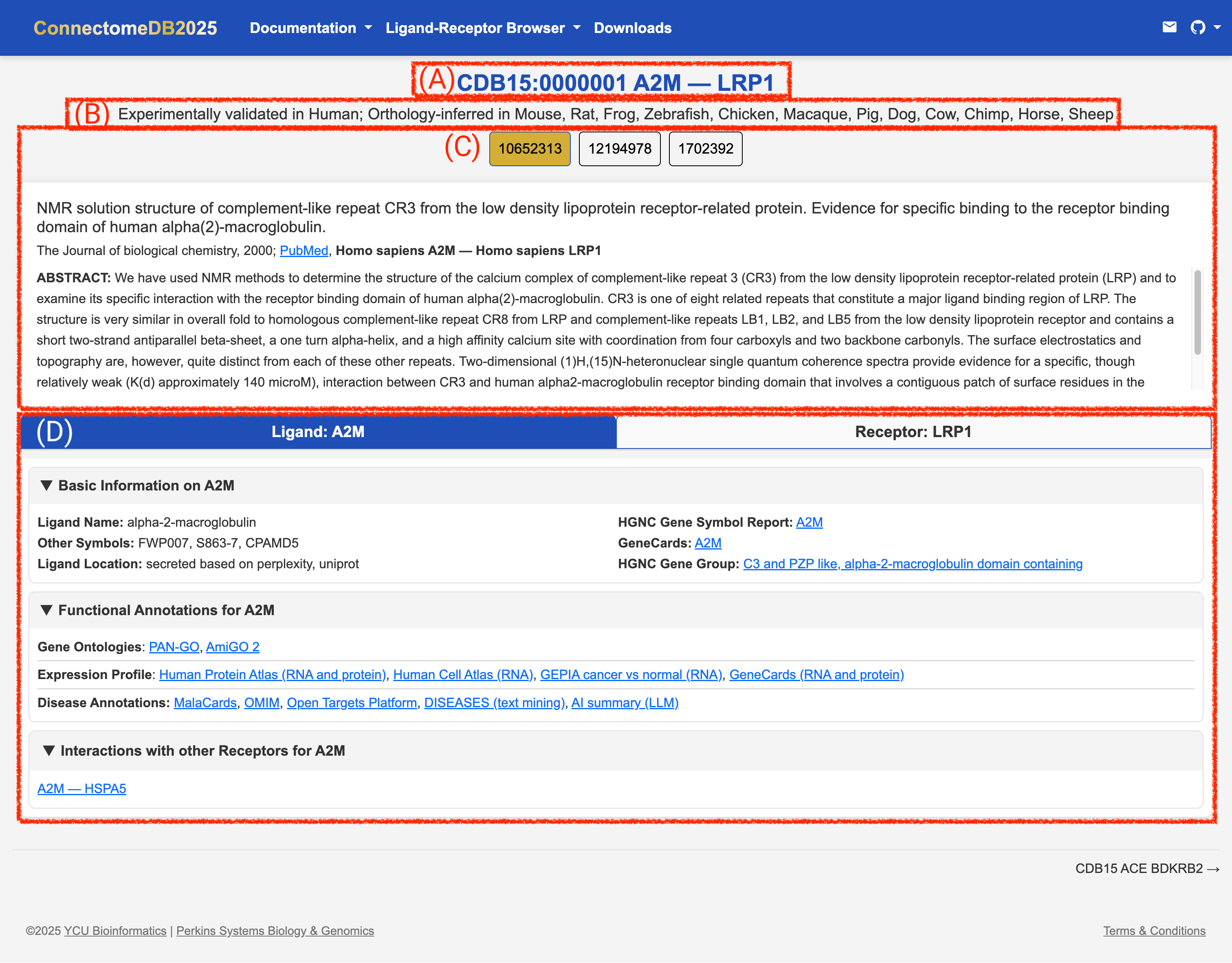 - LR Pair PMID Evidence: The PubMed ID(s) of the publications with their Abstracts and specific species for the ligand and receptor in that study. See (C) in the image below.